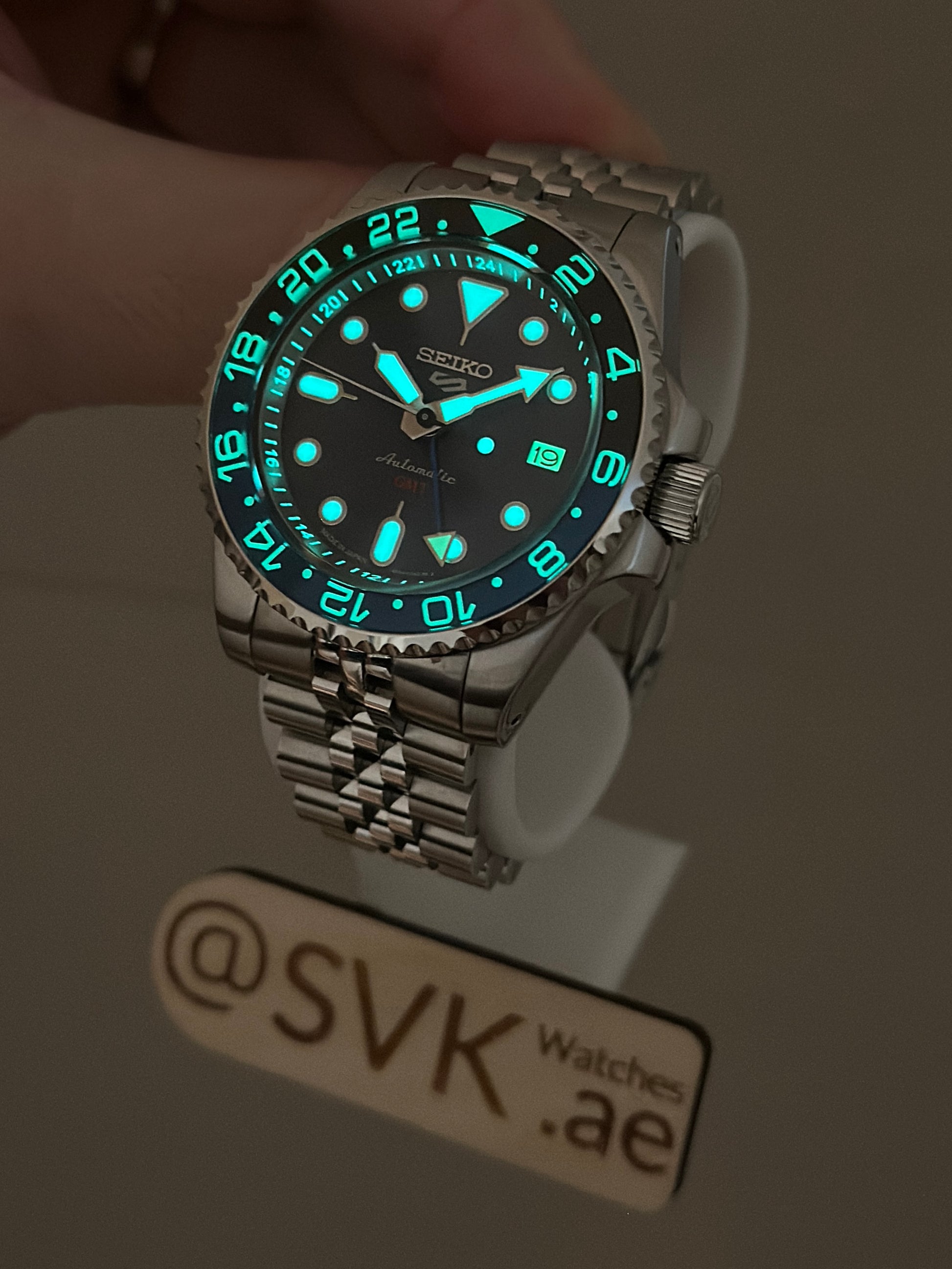 - Hands: SSK / Blue GMT Arrow